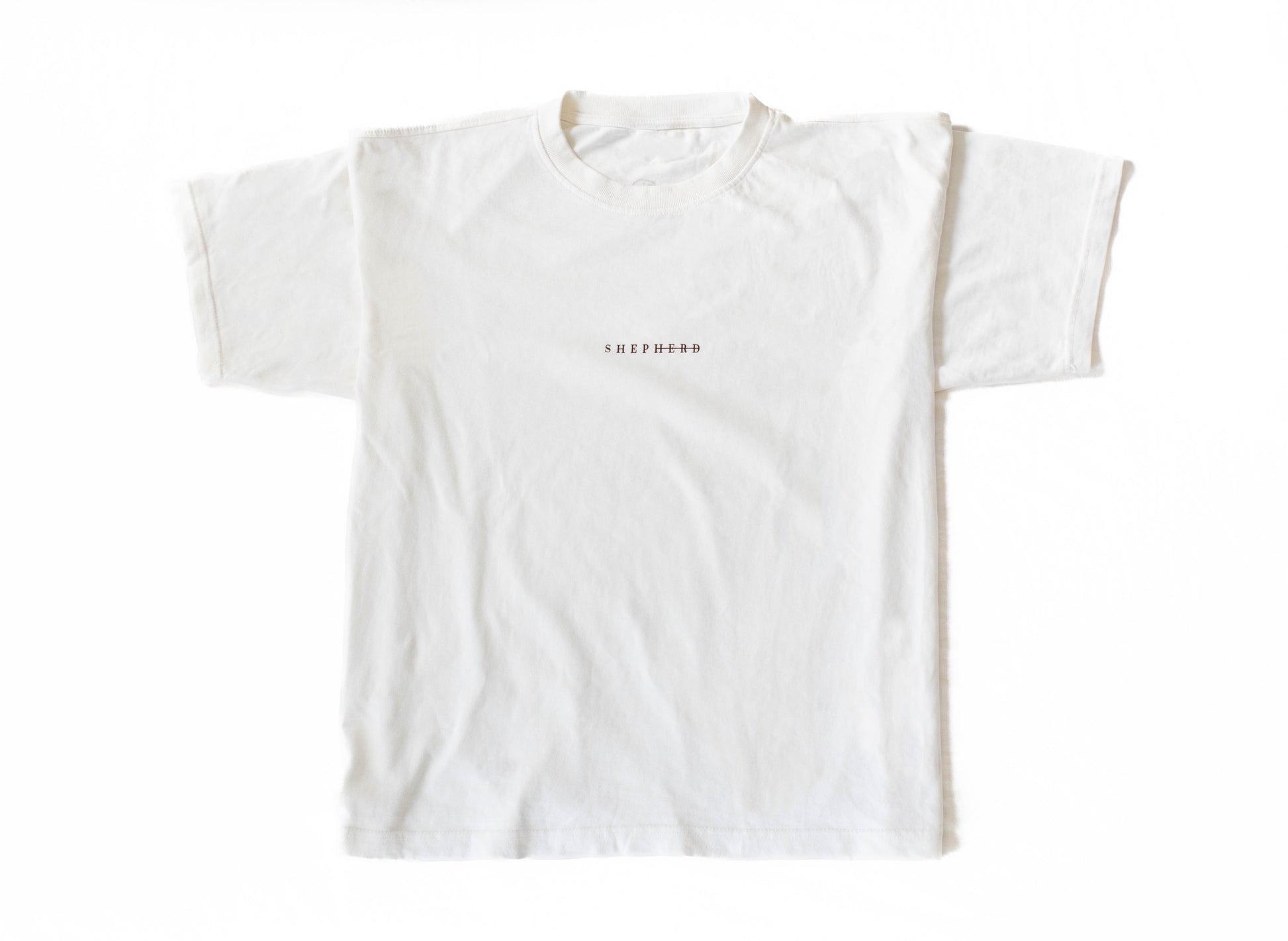 The Luxe Heavy Tee in white featuring black screen print Shepherd detail. Also available in black with white screen print shepherd detail.