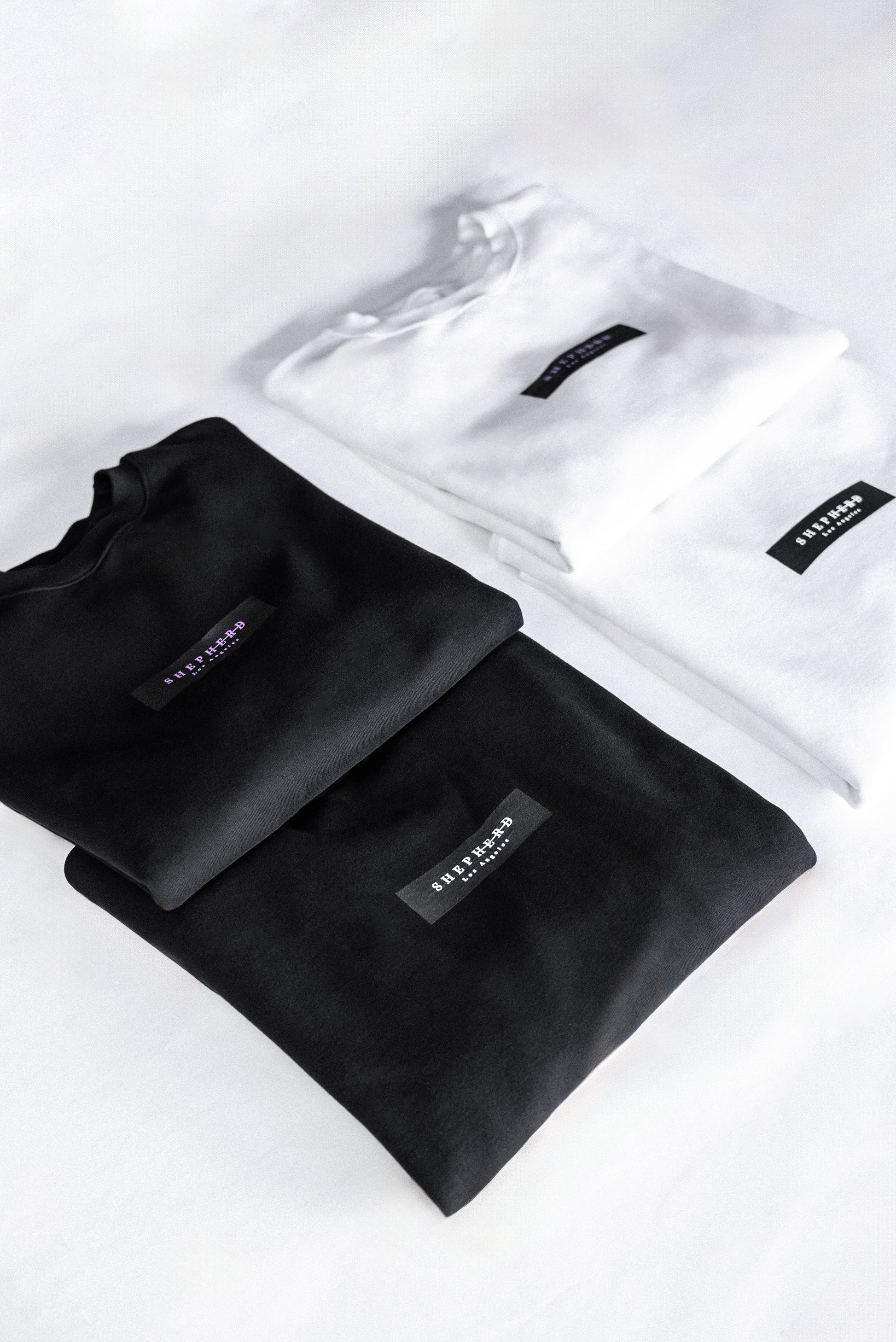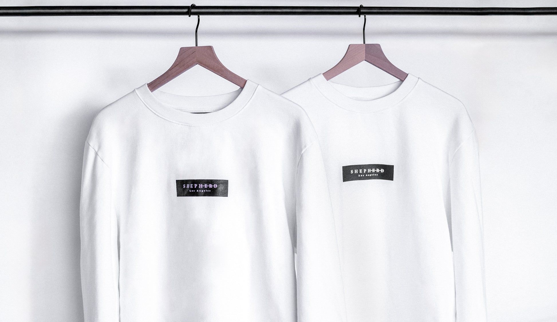 The Crew Sweatshirt in white featuring white Shepherd Los Angeles detail.