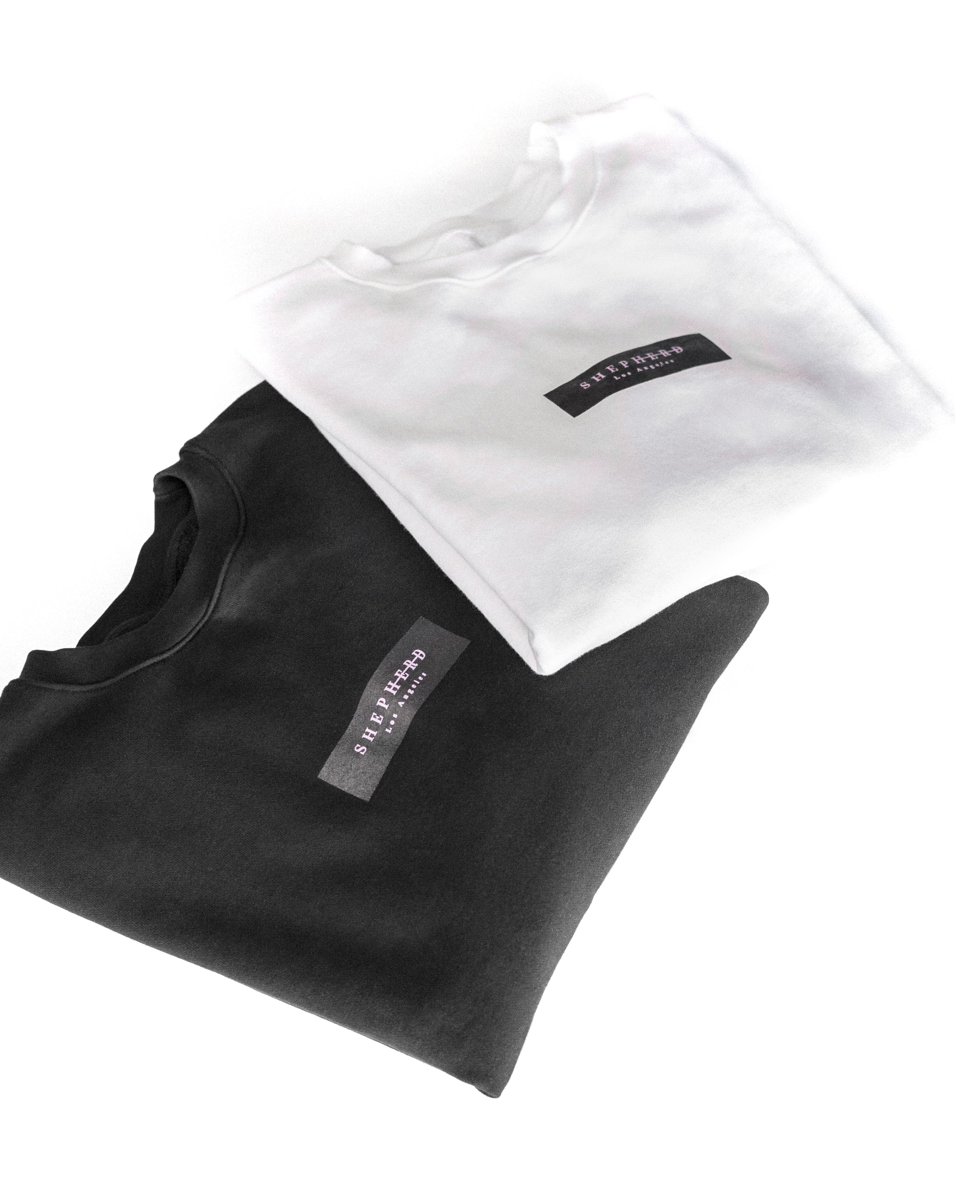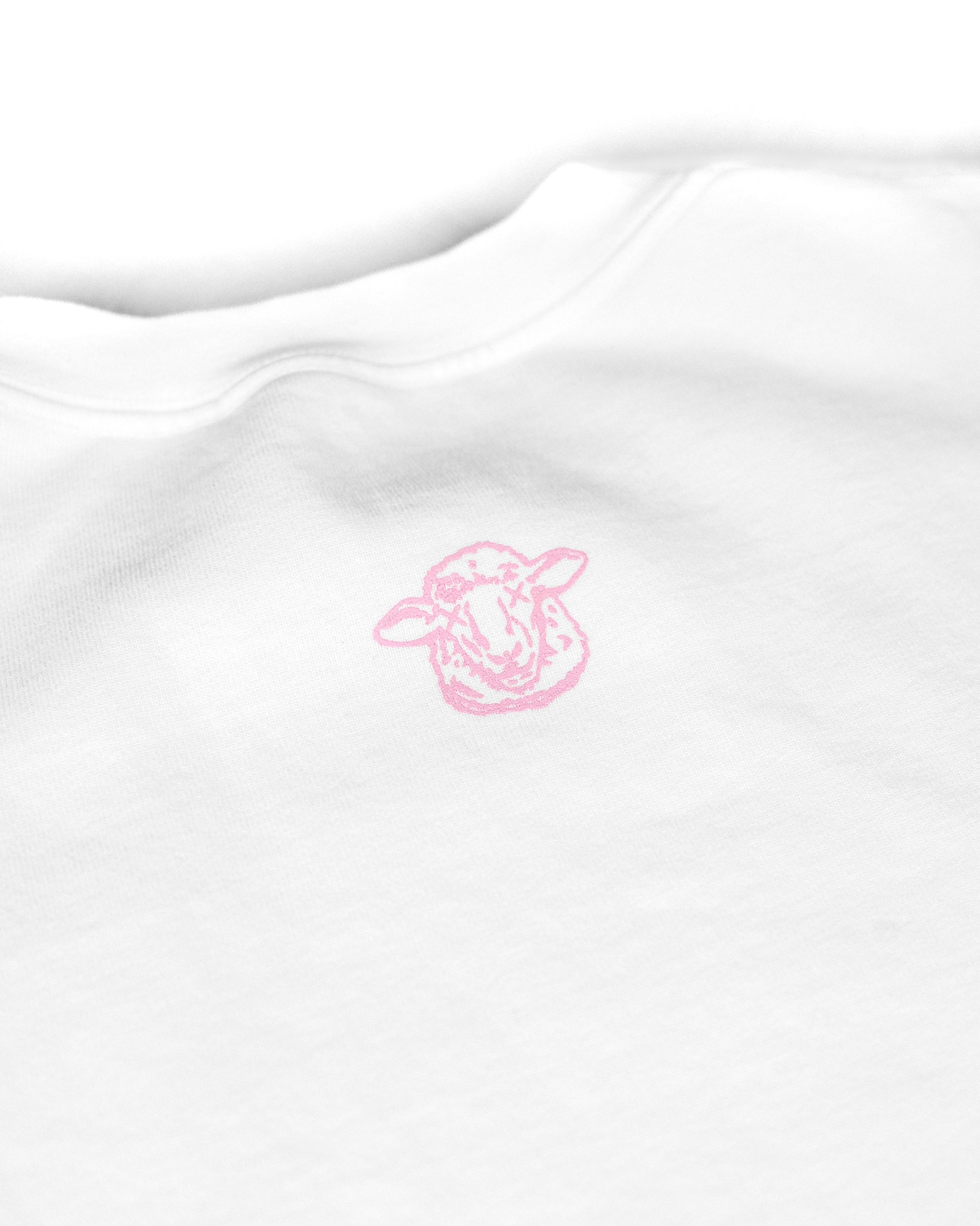 The Crew Sweatshirt in white featuring pink Shepherd Los Angeles detail.